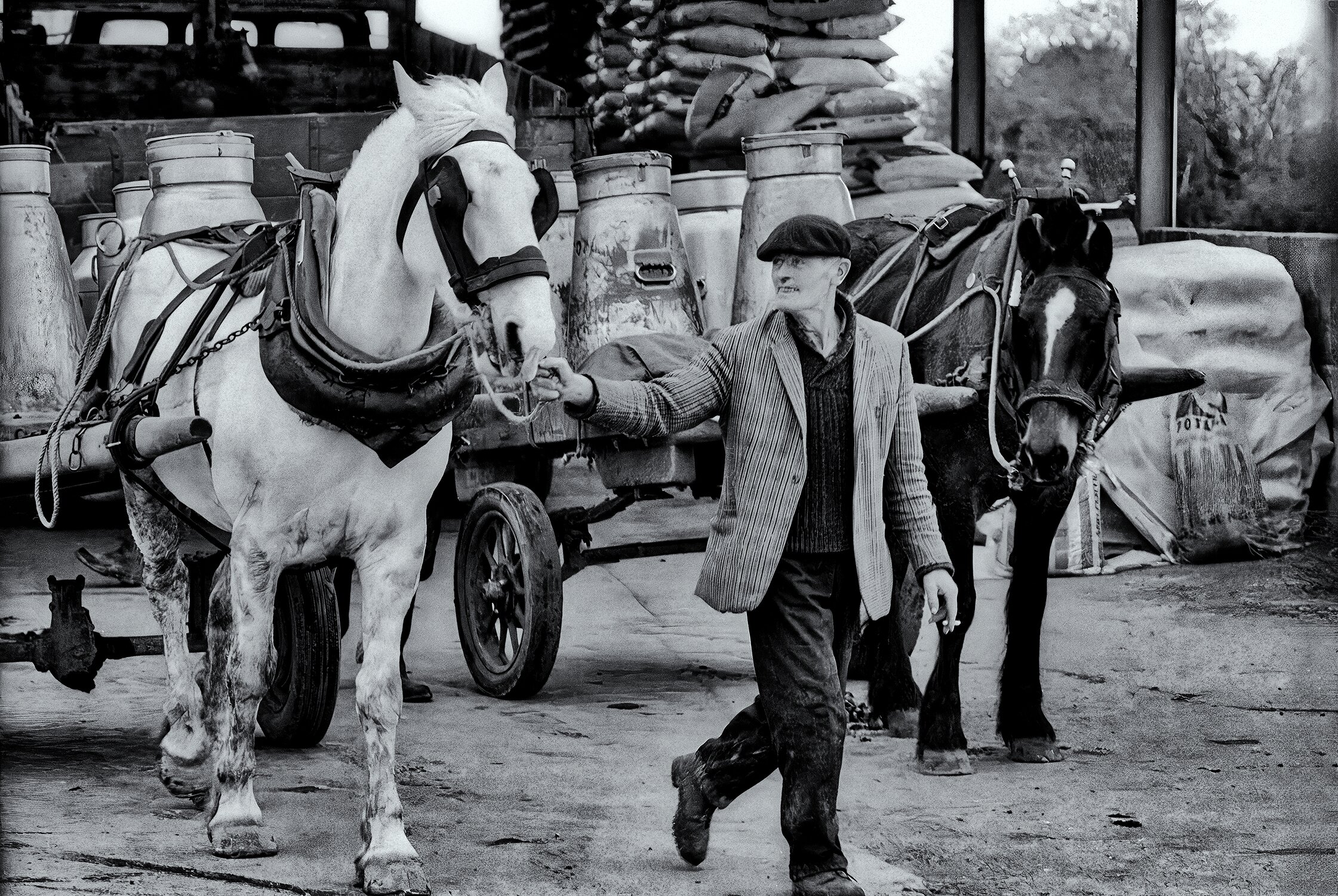 Fixing a Tire on Natoma Street-USA Unhappy NYC Police at 1969 Protest-USA Coney Island Ticketaker and Ferris Wheel-USA Selling Hot Chestnuts and Bagels-USA Construction Worker-USA Close Call-USA Selling Fish-USA DC Police at Nixon 1968 Inaugaration-USA Police Arresting Demonstrator-USA D.C. Police Controling Protest-USA Tilling a Galway Field-Ireland Dairy Man Leads Horse-Ireland ishermen Preparing Nets-Portugal Photographer-Italy Boat Builder-Greece Men Wait for Work-Turkey Apprentice Tinsmith-Iran Kurdish Shepherds with Flock-Syria Seller of Used Clothing-Morocco Weaving in Fez-Morocco Work Color